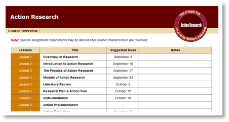 A online course designed & developed for a Master's program (ITMA) at Virginia Tech. (Developing tool | Adobe Dreamweaver) |
